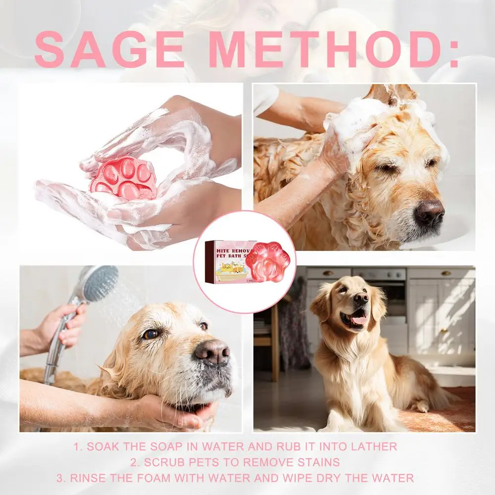 2. User-Friendly Scrubbing: Soak the soapbar in water and rub it into a lather, then scrub your pet to remove stains, rinse the lather with water and wipe dry. Simple to use and gentle on your pet's skin.